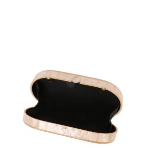 Elevate your evening look with this stunning pearlized acrylic clutch that catches the light from every angle. The lustrous finish adds instant glamour to cocktail dresses, formal wear, or special occasion outfits. Compact yet spacious enough for essentials, this sophisticated clutch pairs effortlessly with any color palette. Perfect for weddings, galas, or nights out when you want to make a statement without the bulk. A timeless accessory that transforms any ensemble into something truly memorable.